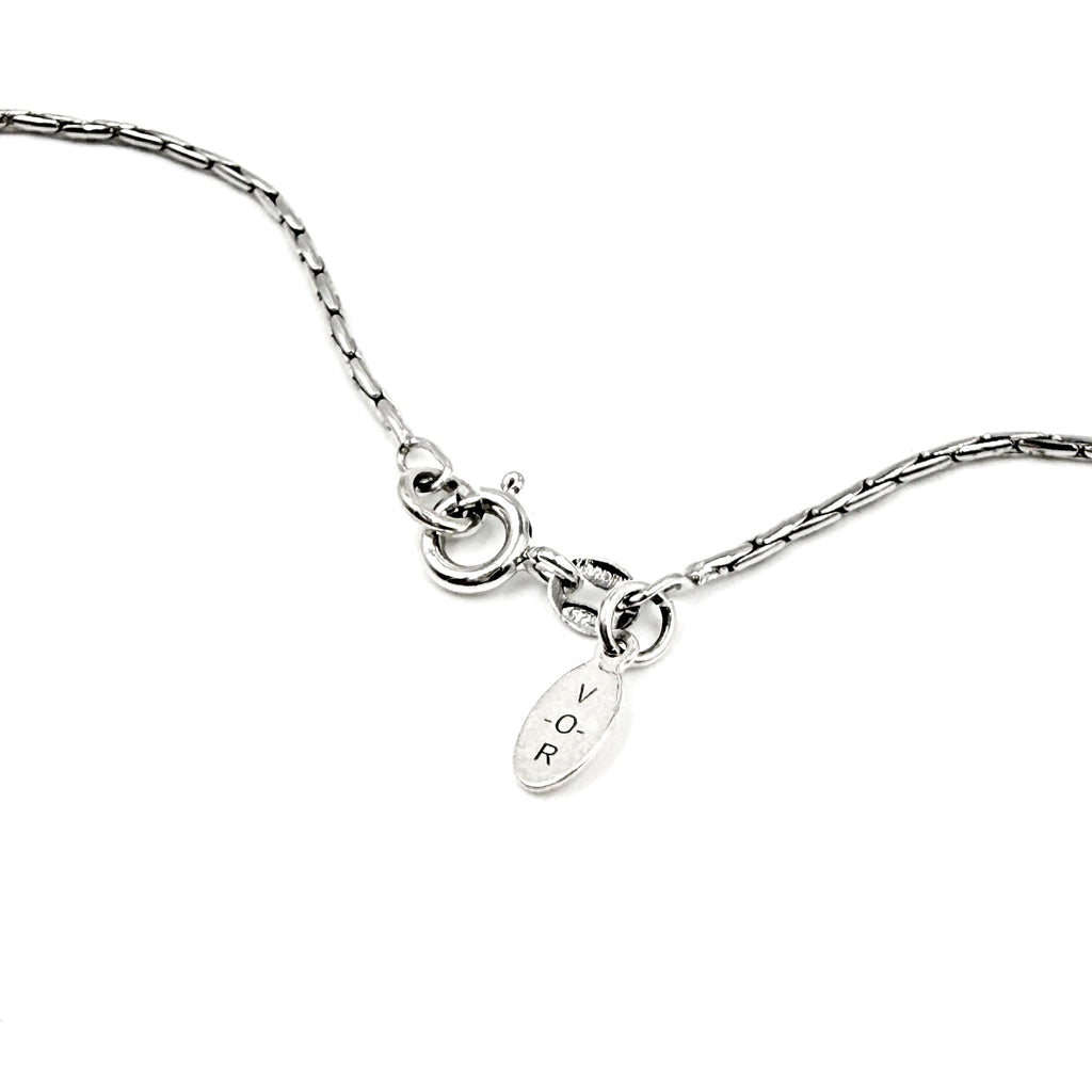 This painter's palette necklace is a perfect gift for the creative soul in your life. The charm features a rainbow of enamel colors paired with a brush, and is marked "Well Ster" on the back. It has been paired with an 18" link chain marked "925 Danecraft". Made from carefully selected vintage sterling silver components for a one-of-a-kind statement.
